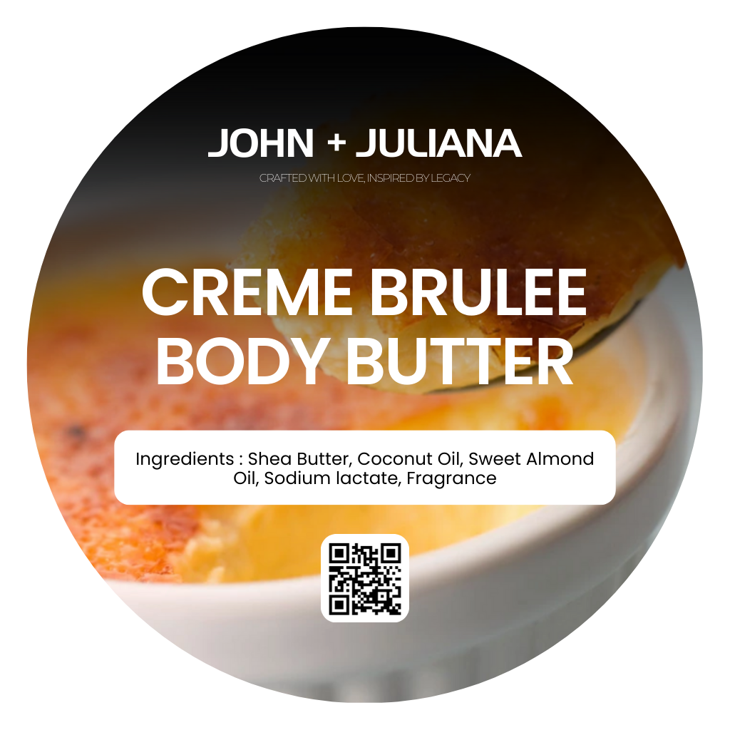 Discover the luxurious hydration of J+J’s Creme Brulee Body Butter. Made with 100% raw shea butter, coconut oil, and sweet almond oil, this hand-whipped non greasy formula absorbs quickly, leaving your skin soft and hydrated for over 24 hours.